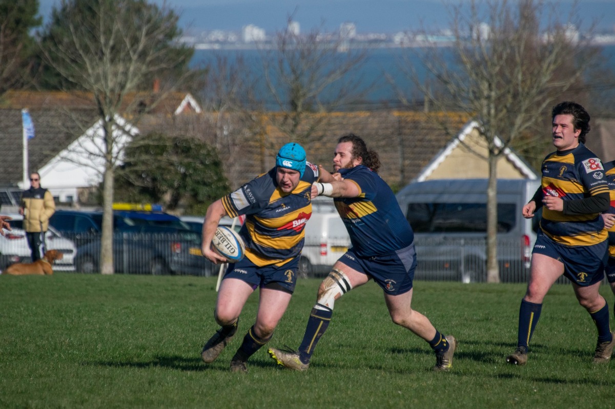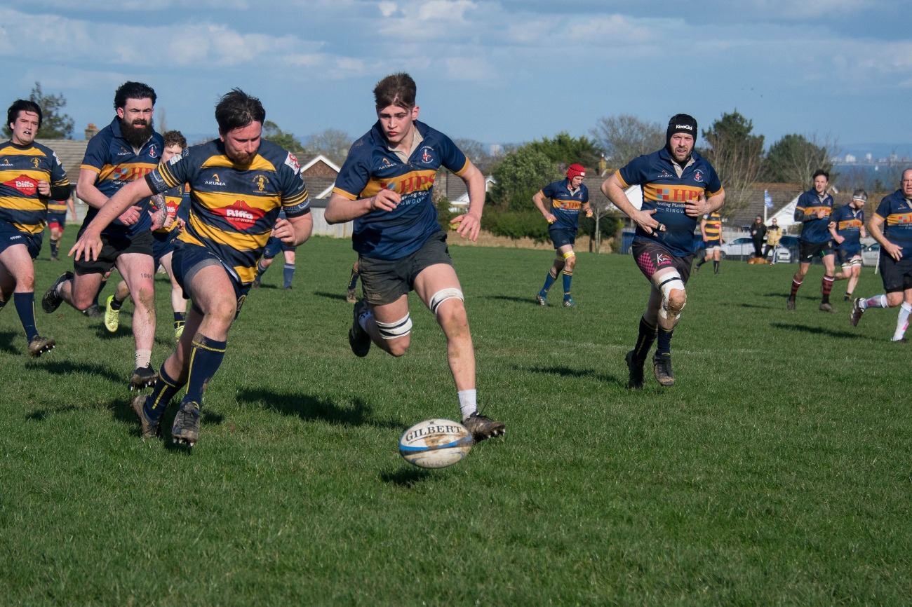 With several enforced changes, IW took a little time to settle into the fixture, taking 12 minutes to open the scoring after a bout of pressure ended with Luke Blackman making a break and passing to hooker Sam McQueen to score near the uprights. IW’s best move of the match followed, as full-back George Huish showed his pace to finish off a good phase of team play.