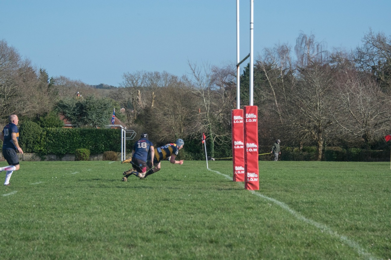 If the first half had been a bit scrappy, the second half was worse. IW had much the stronger team but played as individuals too often, while they were whistled off the park throughout. Their scrum was still in control and Bussell was able to score his second from a pushover try. Another try followed shortly before the midway point of the half, captain Luke Blackman showing the way forward by going direct and bulldozing a would-be defender to score. Huish was soon to complete his hat-trick as IW brought up the half-century, his points tally reaching 27 with six conversions added.